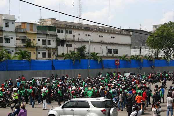 PotretBisnis.com,MEDAN- Sejumlah pengendara ojek online melakukan sweeping penarik Becak Bermotor (Betor) dikawasan Lapangan Merdeka Medan, Rabu, (22/2). Sweeping tersebut dipicu oleh tindakan para penarik betor yang menghentikan pengendara ojek online dan menurunkan penumpangnya, serta melakukan pengrusakan pengendra dan atribut. Sementara itu pada hari yang sama, penarik betor juga melakukan penganiayaan terhadap supir Grab online di depan Plaza Medan Fair. PotretBisnis/A.Susno