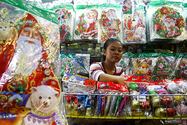 PotretBisnis.com, MEDAN – Jelang Natal dan Tahun Baru sejumlah persiapan pun dilakukan, di antaranya menghias rumah dengan pernak pernik natal. Penjualan pernak pernik jelang natal dan tahun baru meningkat dibanding hari biasa. Pernak pernik yang dijual antara lain gantungan kertas,berbentuk boneka,serta stiker,dll nya. (PotretBisnis/Obby Regar)