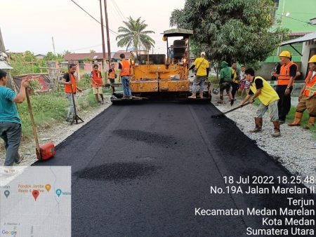 PotretBisnis.com, MEDAN– Wali Kota Medan Bobby Nasution selalu menekankan kawasan Medan bagian Utara juga merupakan bagian tidak terpisah dari pembangunan ibu kota Sumatra Utara ini. Program-program prioritas, termasuk pembenahan infrastruktur yang mulai awal 2022 gencar dilaksanakan Dinas Pekerjaan Umum (PU) Medan. Teranyar, Organisasi Perangkat Daerah (OPD) ini melakukan pengaspalan di Jalan Marelan Saga, Kelurahan Terjun, Kecamatan Medan Marelan.