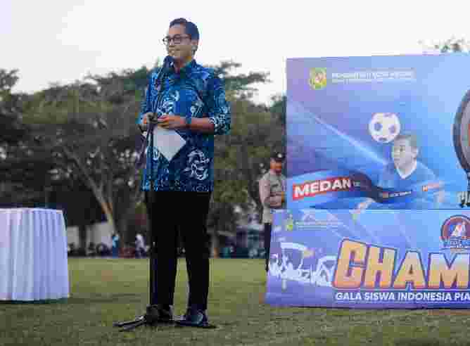PotretBisnis.com, MEDAN-Turnamen Gala Siswa Indonesia (GSI) tahun 2025 antar Sekolah Menengah Pertama (SMP) se- Kota Medan yang berlangsung di Lapangan Sepakbola Cadika, Medan Johor, resmi ditutup Wali Kota Medan Rico Tri Putra Bayu Waas, Sabtu (19/7/25). Kegiatan yang berlangsung selama 5 hari ini diikuti 21 tim sepakbola pelajar dari 21 Kecamatan yang ada di Kota Medan.