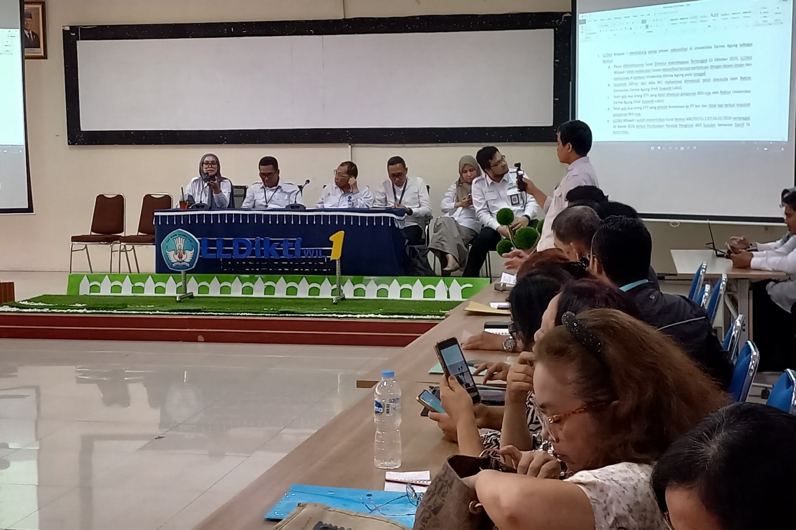 “Kalau dari kami LLDikti, saya sangat senang sebetulnya. Pak Kepala juga sangat mengapresiasi dengan hadirnya kedua belah pihak pada hari ini. Artinya pada kesempatan-kesempatan sebelumnya kita susah mungkin menemui kedua belah pihak secara di waktu yang bersamaan. Namun pada kesempatan ini, baik dari pengelola AHU 2022 maupun pengelola AHU 2025 itu hadir di ruangan yang sama berdiskusi dengan hal yang sama meskipun perbedaan pendapat masih ada,” kata Armiadi.
