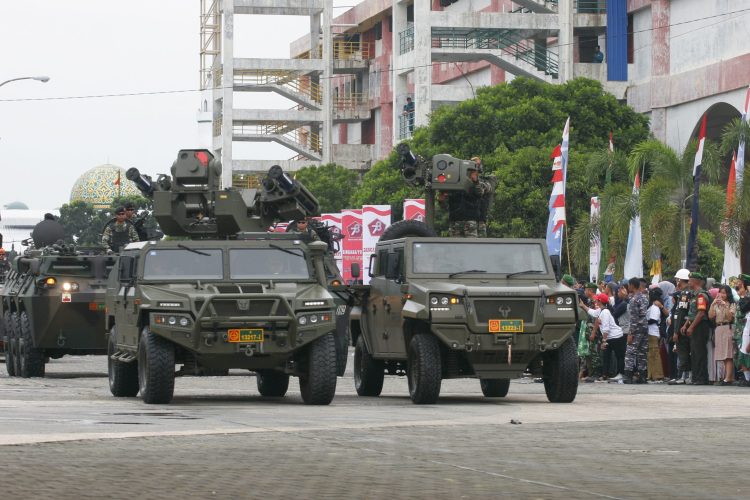 PotretBsnis.com, MEDAN-Memperingati Hari Ulang Tahun Tentara Nasional Indonesia (HUT TNI) ke-78 tahun, prosesi upacara dan pelbagai rangakaian kegiatan seperti parade mobil tempur, baris pasukan dan lainnya digelar di Lapangan Astaka Pancing, Medan, Sumatera Utara, Kamis (5/10/2023).