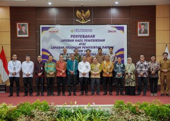 Gubernur Sumatera Utara, Tengku Erry Nuradi berfoto bersama jajaran staf dan pegawai Lembaga Penyiaran Radio Republik Indonesia, Di Medan, Selasa ...